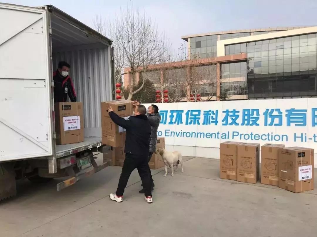 河北先河環(huán)保向湖北捐贈醫(yī)療廢物轉(zhuǎn)運車6輛、醫(yī)療廢水在線監(jiān)測設(shè)備2臺、口罩30000多只、手套20000多雙、酒精300多箱、泡騰片80000多片、凈化器200多臺。