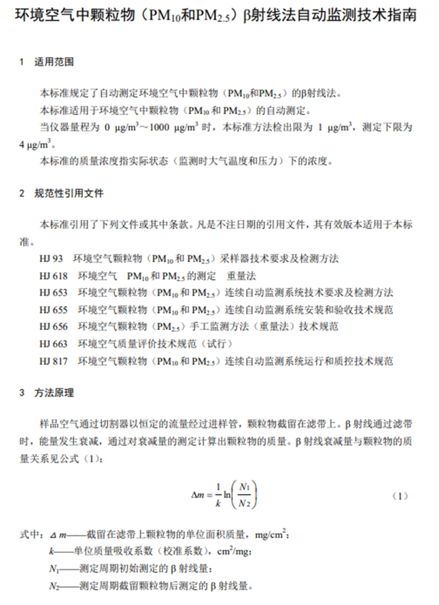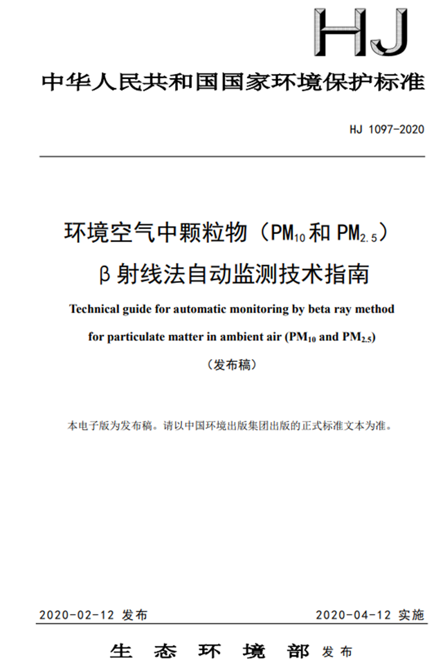 環(huán)境空氣中顆粒物(PM10和PM2.5)β射線法自動監(jiān)測技術指南(HJ1097-2020)