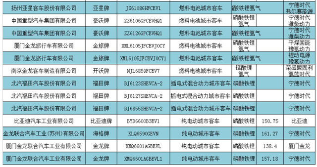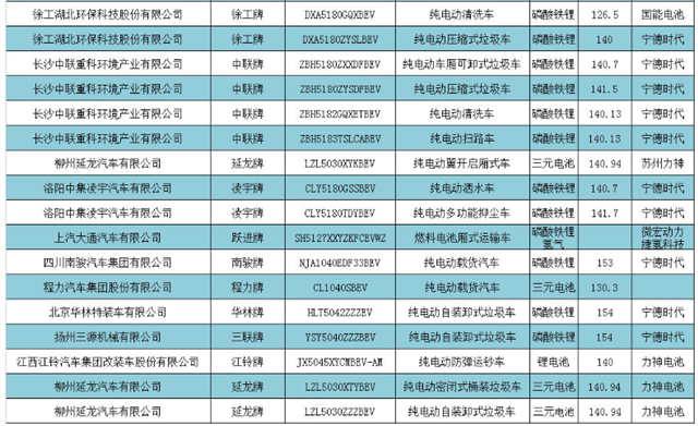 在62款新能源專用車車型中,磷酸鐵鋰電池有50款,錳酸鋰電池2款,氫燃料電池車型6款。