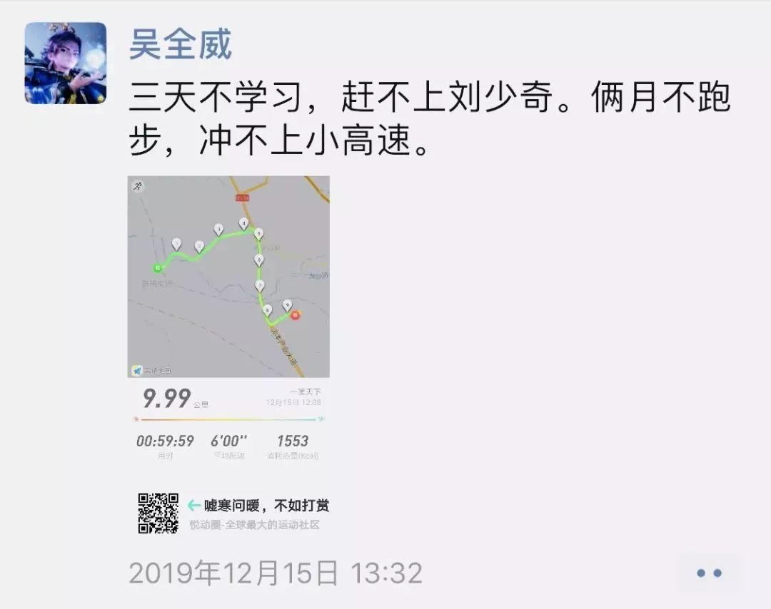吳全威平時最大的愛好便是跑步,時常能在朋友圈看到他跑步的身影,偶爾還會發(fā)一些參加馬拉松比賽的照片。他說,一定要堅持馬拉松精神去工作,不斷的超越自我,永不放棄。