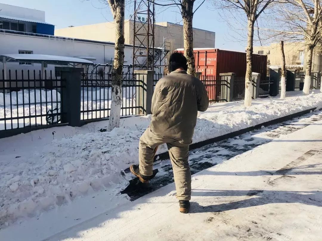 近日,沈陽迎來大暴雪,整個廠區(qū)覆蓋在皚皚白雪中。從清晨到晌午,再到傍晚,他們除了吃飯就是在清除積雪。作為安環(huán)專員,吳全威表示一定要嚴把道路“安全關(guān)”,保證收運車能平穩(wěn)安全地駛?cè)霃S區(qū)。