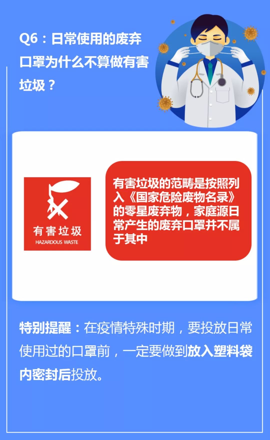 所以,為了減少作業(yè)人員和公眾的衛(wèi)生風(fēng)險(xiǎn),請(qǐng)將疫情期間日常產(chǎn)生廢棄的口罩使用塑料袋密封后,作為干垃圾進(jìn)行投放。