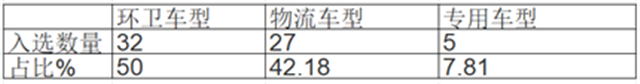 由圖表可見,在2020年第1批新能源汽車推薦目錄中,新能源專用車占比最高(以往都是新能源客車入選占比最高)。這是近年來沒有過的,刷新了近年專用車入選占比的新紀(jì)錄。而在其中,環(huán)衛(wèi)車型又是占比最高的細(xì)分車型,占據(jù)半壁江山。