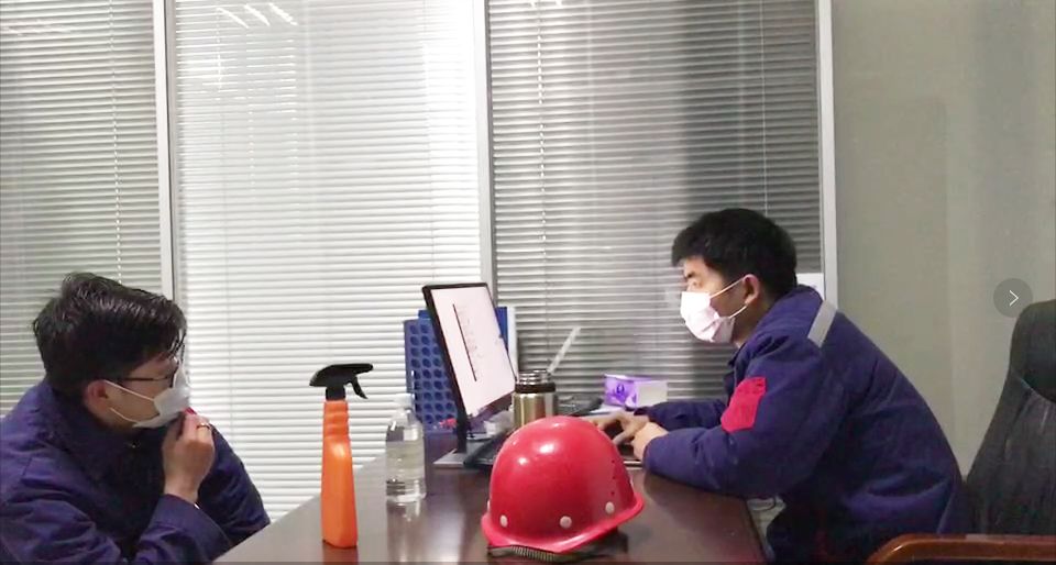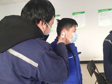 7點(diǎn)50分的中控室,夜班員工陶噲正仔細(xì)地為每一位接班的同事測(cè)量體溫,做完記錄后,他們?cè)僖煌哌M(jìn)已完成消殺工作的車間里,開始交接工作。