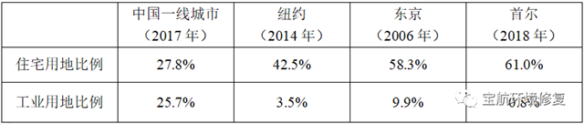 表4 中美日韓一線城市用地結構差異