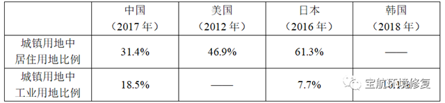 表3 中美日韓城鎮(zhèn)用地結構差異