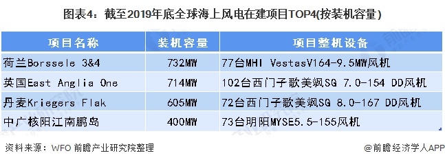 此外,在建23個(gè)海上風(fēng)電項(xiàng)目中,以荷蘭Borssele 3&4項(xiàng)目為首,其裝機(jī)容量將達(dá)到732MW;其次為英國(guó)East Anglia One、丹麥Kriegers Flak以及中廣核陽(yáng)江南鵬島,其裝機(jī)容量均超過(guò)了400MW。