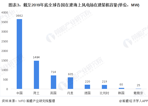 截至2019年底,全球共有23個(gè)在建海上風(fēng)電項(xiàng)目,共7GW;其中中國(guó)在建海上風(fēng)電項(xiàng)目達(dá)到13個(gè),占全球56.5%。同時(shí),從裝機(jī)容量分布來(lái)看,中國(guó)在建海上風(fēng)電項(xiàng)目的裝機(jī)容量高達(dá)3.7GW,占全球在建海上風(fēng)電項(xiàng)目容量的52.9%??梢钥闯?,中國(guó)在海上風(fēng)電市場(chǎng)的布局快速擴(kuò)張。同時(shí),前瞻結(jié)合目前全球已投運(yùn)的裝機(jī)容量以及在建裝機(jī)容量來(lái)看,中國(guó)在2020年后將有可能成為全球最大的海上風(fēng)電市場(chǎng)。