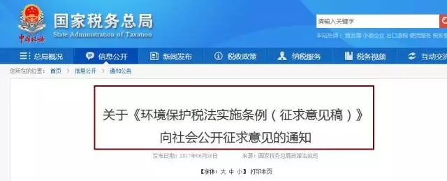 在環(huán)保稅法通過半年后(2017年6月26日),公眾得以正式參與建言獻(xiàn)策,財(cái)政部、國家稅務(wù)總局、環(huán)境保護(hù)部發(fā)布《中華人民共和國環(huán)境保護(hù)稅法實(shí)施條例(征求意見稿)》。