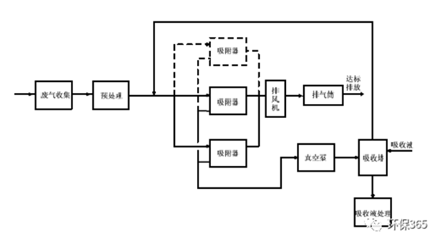 應(yīng)根據(jù)廢氣的來(lái)源、性質(zhì)(溫度、壓力、組分)及流量等因素進(jìn)行綜合分析后選擇工藝路線。根據(jù)吸附劑再生方式和解吸氣體后處理方式的不同,可選用的典型治理工藝有: