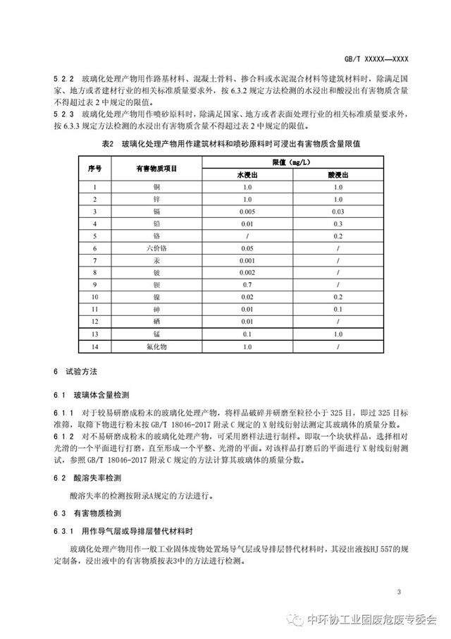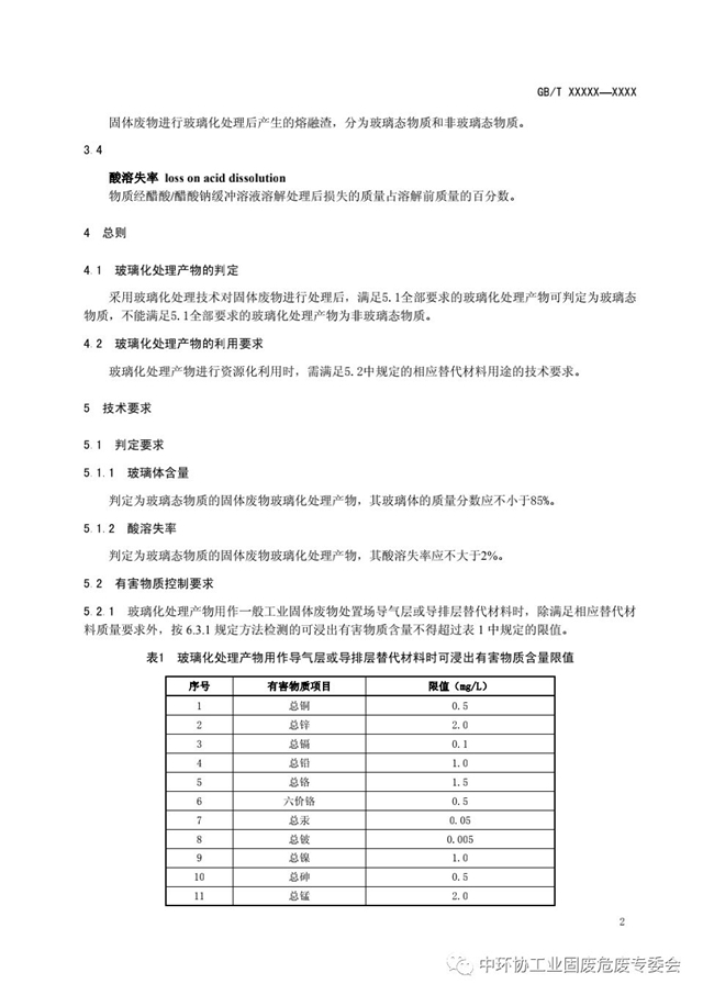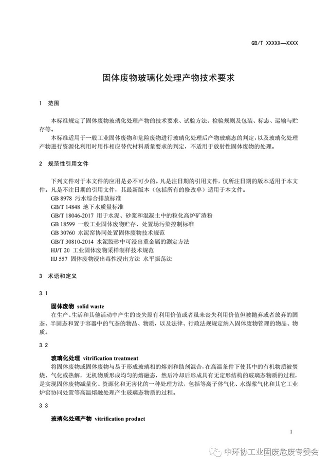 中環(huán)協(xié)工業(yè)固廢危廢專委會(huì):《固體廢物玻璃化處理產(chǎn)物技術(shù)要求(征求意見稿)》