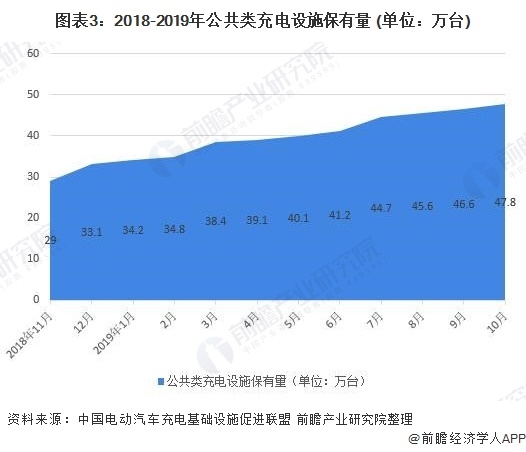 電動(dòng)汽車普及的關(guān)鍵是便利的充電基礎(chǔ)設(shè)施,隨著新能源汽車地方購(gòu)置補(bǔ)貼使得新能源汽車產(chǎn)量增長(zhǎng)略有成效后,出于長(zhǎng)遠(yuǎn)發(fā)展的考慮,新能源汽車地方購(gòu)置補(bǔ)貼資金逐漸轉(zhuǎn)為支持充電基礎(chǔ)設(shè)施建設(shè)和運(yùn)營(yíng)等環(huán)節(jié)。在電動(dòng)化、智能化、共享化和網(wǎng)聯(lián)化的大趨勢(shì)下,多家汽車制造商表示將重點(diǎn)放在研發(fā)電動(dòng)汽車上,但是市場(chǎng)中純電動(dòng)汽車的推廣仍然存在較大的瓶頸,電動(dòng)汽車的普及率仍然較低,影響產(chǎn)量增速,主要原因是車主對(duì)純電動(dòng)汽車?yán)m(xù)航的憂慮,所以促進(jìn)電動(dòng)汽車的發(fā)展一方面除了提升電池的性能之外,還包括提供便利快速的充電設(shè)施。近年來(lái)我國(guó)公共類充電設(shè)施保有量也逐漸增加。2018-2019年公共類充電設(shè)施保有量逐漸增加,截止2019年10月底,公共類充電設(shè)施保有量達(dá)到47.8萬(wàn)臺(tái),較2018年底增加4.7萬(wàn)臺(tái)。