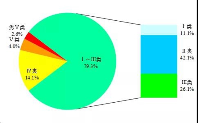 圖1 2020年2月全國(guó)地表水水質(zhì)類別比例