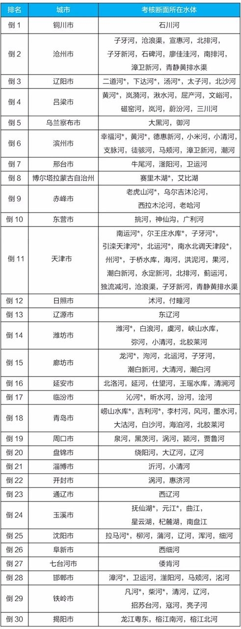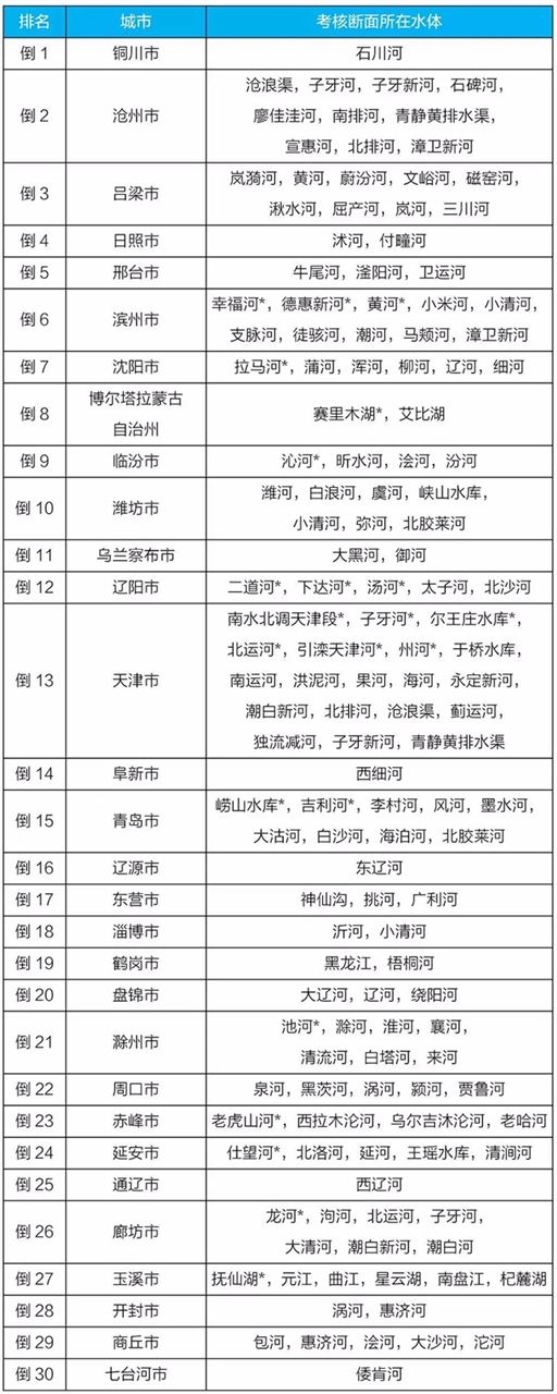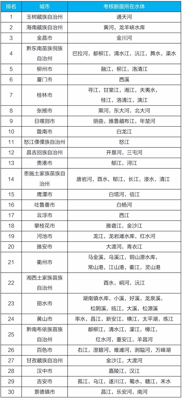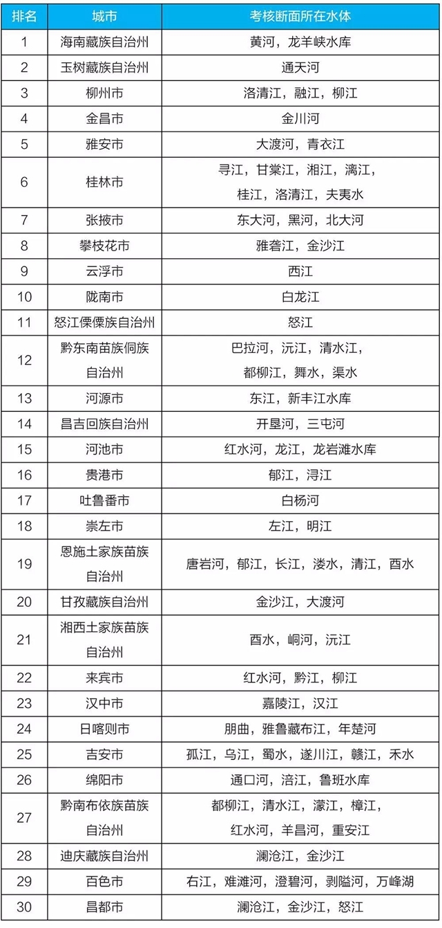 地級(jí)及以上城市國(guó)家地表水考核斷面排名