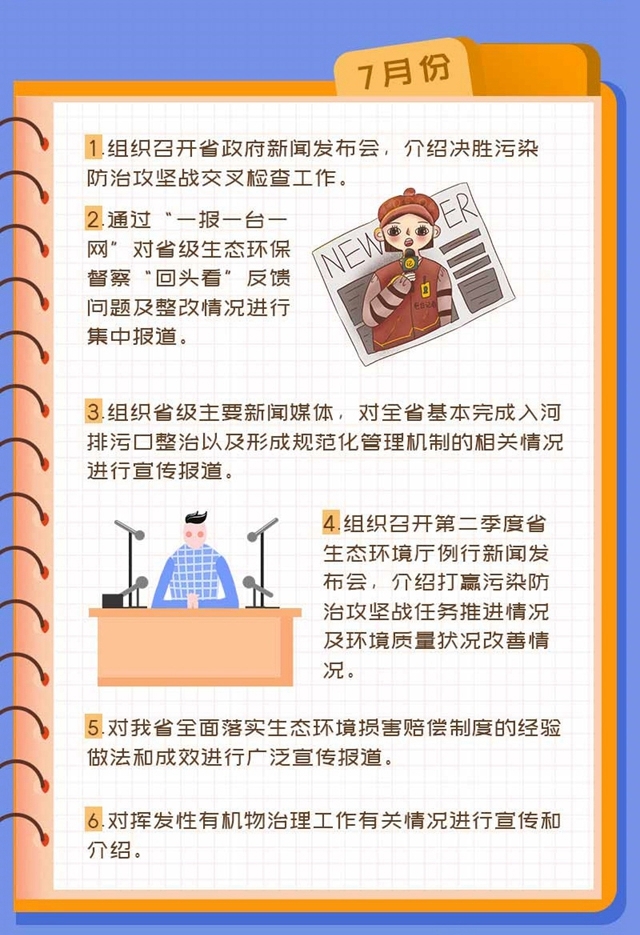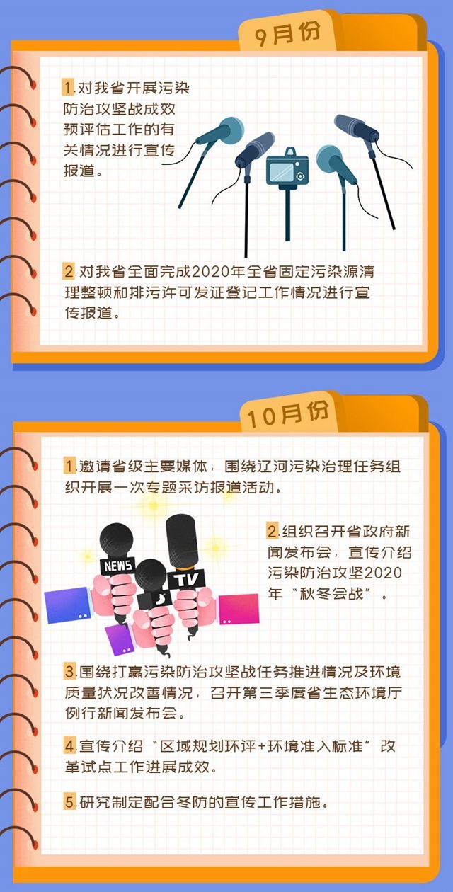 《工作計(jì)劃》緊扣攻堅(jiān)戰(zhàn)實(shí)施方案重點(diǎn)任務(wù),按照攻堅(jiān)戰(zhàn)總施工圖和分項(xiàng)施工圖工作安排,緊隨形勢需要,緊盯短板問題,按月份時(shí)序部署了生態(tài)環(huán)保督察、“兩河一湖”整治、重污染天氣治理、生態(tài)問題整治、行政審批服務(wù)改革、典型宣傳等重點(diǎn)任務(wù)的宣傳計(jì)劃,明確了采取新聞發(fā)布、網(wǎng)絡(luò)新媒體推廣、專題和伴隨采訪等宣傳方式,強(qiáng)調(diào)了通過省級、國家級主要媒體渠道進(jìn)行廣泛推廣,提出了責(zé)任、時(shí)限等方面的具體要求,為決勝2020污染防治攻堅(jiān)戰(zhàn)營造濃厚的輿論氛圍。