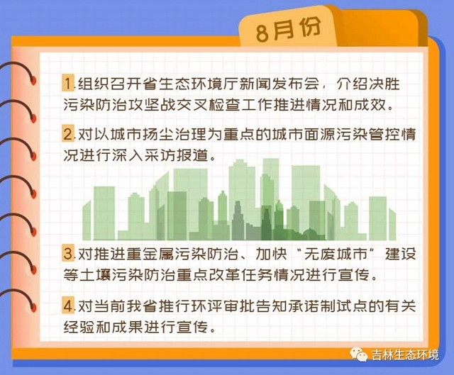 2020年是全面建成小康社會(huì)的收官之年,也是污染防治攻堅(jiān)戰(zhàn)的決戰(zhàn)決勝之年。為全面加強(qiáng)生態(tài)環(huán)境保護(hù)宣傳工作,為決勝污染防治攻堅(jiān)戰(zhàn)提供有力支撐,吉林省生態(tài)環(huán)境廳出臺(tái)了《決勝2020污染防治攻堅(jiān)戰(zhàn)宣傳工作計(jì)劃》(吉環(huán)宣字〔2020〕3號,以下簡稱《工作計(jì)劃》),圍繞年度攻堅(jiān)決勝階段重點(diǎn)任務(wù)強(qiáng)化宣傳保障措施。
