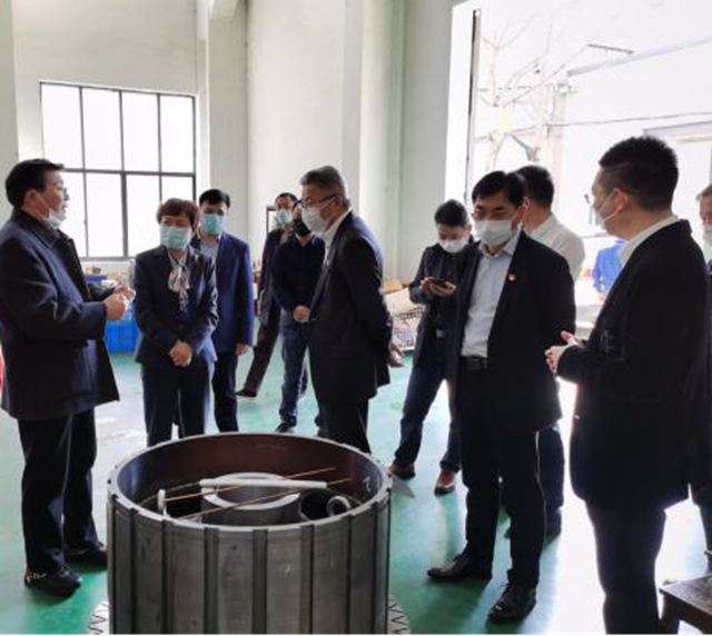 謝董一行參觀了公司的生產(chǎn)車間、測試車間,對永發(fā)機(jī)電的生產(chǎn)能力、技術(shù)水平、工藝流程進(jìn)行了詳細(xì)了解。高董首先對謝董一行的到來表示熱烈歡迎,向謝董一行匯報了永發(fā)公司目前業(yè)務(wù)開展情況。在聽完高董的介紹后,謝董對永發(fā)機(jī)電的研發(fā)能力和制造能力給予了充分肯定,她認(rèn)為,永發(fā)機(jī)電擁有五十余年的電機(jī)制造經(jīng)驗,尤其是目前不斷涉及的水利領(lǐng)域、軍工領(lǐng)域,創(chuàng)新研究的努力與成果值得贊賞!并表示省機(jī)電集團(tuán)會積極考慮與永發(fā)公司在風(fēng)電設(shè)備、軍工設(shè)備等領(lǐng)域進(jìn)行合作。