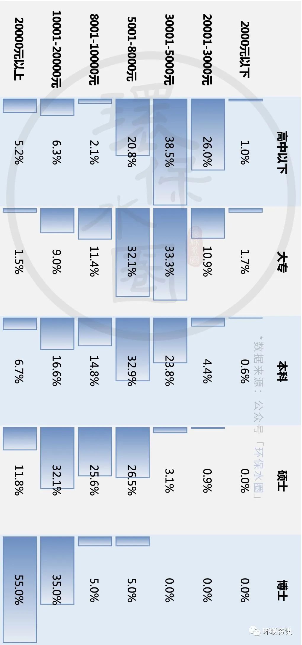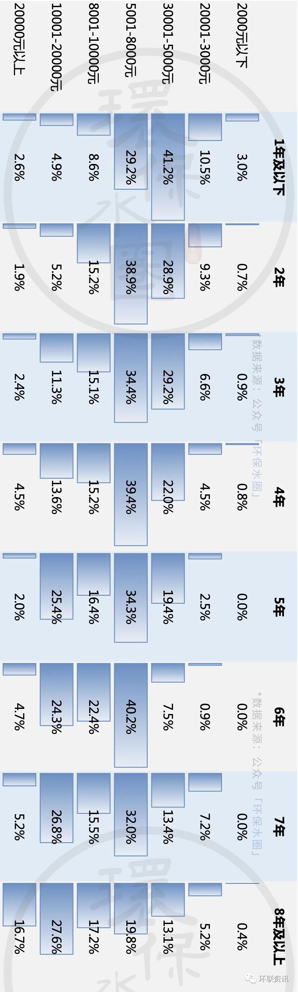 3. 注意這份報(bào)告不是應(yīng)屆畢業(yè)生的薪酬調(diào)研報(bào)告,而是針對(duì)環(huán)保行業(yè)現(xiàn)有從業(yè)者的薪酬調(diào)研,所千萬(wàn)不要以為剛畢業(yè)就能拿到這份工資。從調(diào)研數(shù)據(jù)我們可以清晰的看到,70.7%參與調(diào)研的人,大多擁有3年以上工作經(jīng)驗(yàn),41%擁有6年以上工作經(jīng)驗(yàn),這從另外一個(gè)維度表明,微信公眾號(hào)「環(huán)保水圈」的訂閱號(hào)戶是一群大概率熱愛(ài)環(huán)保行業(yè)并且有自我提升習(xí)慣的從業(yè)者。4. 對(duì)于職場(chǎng)新人來(lái)說(shuō),這意味著進(jìn)入環(huán)保各細(xì)分行業(yè)龍頭企業(yè)或者具備較強(qiáng)技術(shù)研發(fā)實(shí)力的中小技術(shù)型企業(yè)將會(huì)是一種“坐高鐵”的體驗(yàn)。如果能力允許,干環(huán)保還是要優(yōu)先選上述類型公司,如果能力不允許,那就先找個(gè)地兒鍛煉能力,然后讓能力變得可以允許。5. 對(duì)于資深從業(yè)者來(lái)說(shuō),環(huán)保行業(yè)已進(jìn)入大洗牌尾聲,大企業(yè)用資金戰(zhàn)拿下的天下,最終都要靠人才來(lái)守,接下來(lái)的人才戰(zhàn)將會(huì)是環(huán)保企業(yè)在環(huán)保行業(yè)能持續(xù)取得勝利并擴(kuò)大戰(zhàn)果的制勝法寶。環(huán)保行業(yè)的的人才的薪酬在接下來(lái)三年將會(huì)是水漲船高,不過(guò)要注意是,這里指的人才是具備較強(qiáng)競(jìng)爭(zhēng)力的環(huán)保從業(yè)者,豐富的經(jīng)驗(yàn)和扎實(shí)的專業(yè)能力是其中的關(guān)鍵。看完報(bào)告,有任何想法,歡迎留言,歡迎轉(zhuǎn)發(fā)!