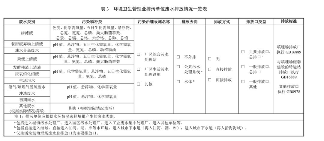 由于本規(guī)范涉及的環(huán)境衛(wèi)生管理業(yè)排污單位廢水排放量變化較大,不同排污單位之間水量差異也較大,特別是生活垃圾填埋場(chǎng)滲濾液的產(chǎn)生量波動(dòng)較大,同時(shí)受氣候、季節(jié)等因素影響較大,廢水許可量難以確定。因此,本規(guī)范將填埋場(chǎng)廢水排放口定為主要排放口,但僅許可排放濃度,對(duì)許可排放量不做要求,排污單位應(yīng)安裝污染物排放自動(dòng)監(jiān)控設(shè)備,同時(shí)應(yīng)核算實(shí)際排放量。其他排污單位排放口均為一般排放口。該規(guī)范中關(guān)于滲濾液的要求截圖如下: