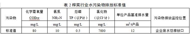 榨菜行業(yè)水污染物排放標準
