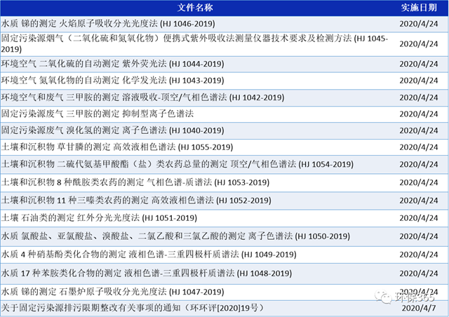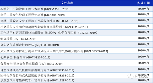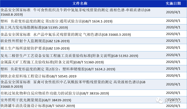 2020年4月,有多部環(huán)境標準、地方文件等將要實施,具體有哪些呢?見下文: