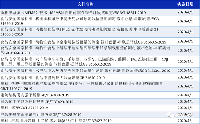 原標題:注意了!2020年4月實施的國家標準等文件匯總,附下載方式