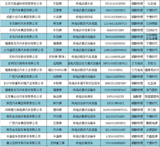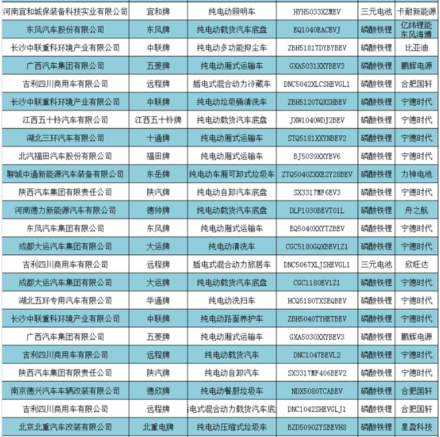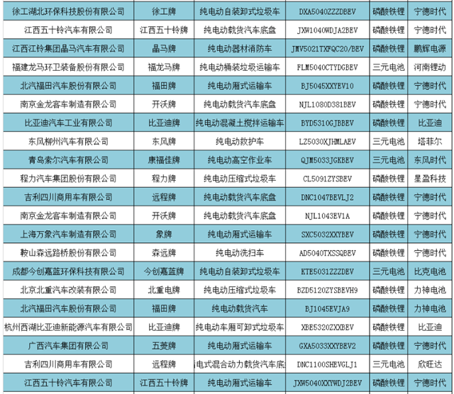 在申報(bào)的133款新能源專用車產(chǎn)品中,磷酸鐵鋰電池車型有118款、占比89%;三元電池車型14款、錳酸鋰電池車型1款。