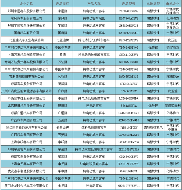 在申報(bào)的116款新能源客車中,磷酸鐵鋰電池車型有109款,占比94%;氫燃料電池車型3款、錳酸鋰電池7款。
