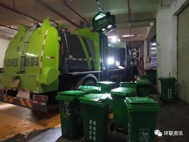 廚余垃圾收運車正在大信新都匯收運廚余垃圾。/順德區(qū)城管執(zhí)法局供圖
