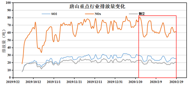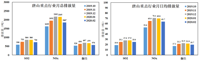 唐山重點行業(yè)排放量變化