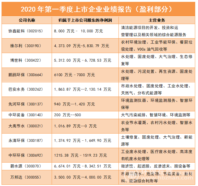 2020第一季度環(huán)保上市企業(yè)成績(jī)單:12家企業(yè)逆風(fēng)生長(zhǎng)