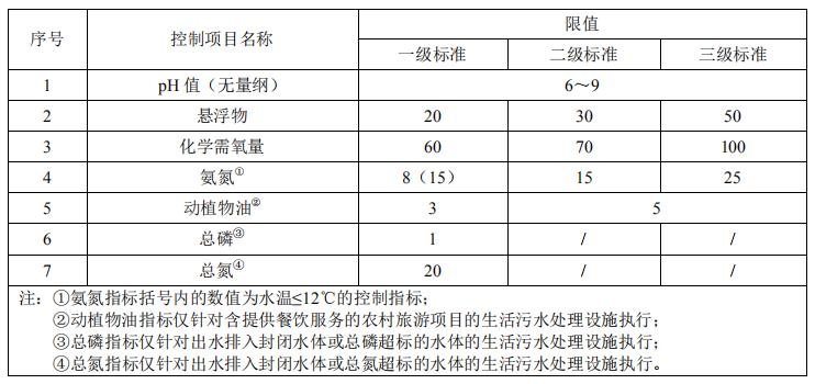 2)農(nóng)村生活污水處理設(shè)施進(jìn)出水水質(zhì)標(biāo)準(zhǔn)