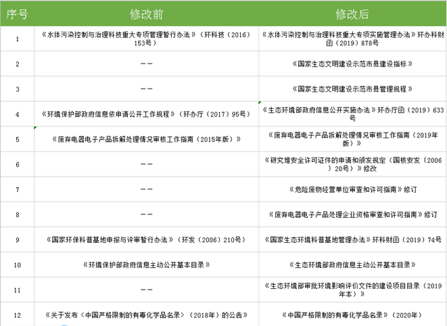 那么,本文不如再歸結(jié)一下,2019年生態(tài)環(huán)境部制修訂的96項(xiàng)國(guó)家生態(tài)環(huán)境標(biāo)準(zhǔn),以及修改的20多部生態(tài)環(huán)境法律、行政法規(guī)都有哪些上榜了。