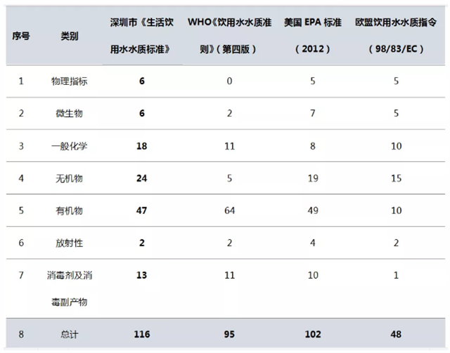 該標準對標世界衛(wèi)生組織(WHO)、歐盟、美國、日本等先進飲用水水質(zhì)標準,結(jié)合深圳市水質(zhì)特點,提出了適應深圳市的供水水質(zhì)指標和限值,并對水質(zhì)管控提出要求,標準包含水質(zhì)指標116項,其中常規(guī)指標52項,非常規(guī)指標64項。