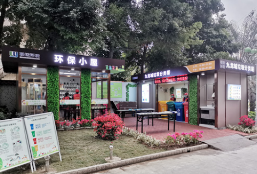 居民只需刷卡選擇紙張、金屬、塑料等選項(xiàng),對(duì)應(yīng)箱門即會(huì)自動(dòng)開啟,實(shí)現(xiàn)無接觸分類投放。智能可回收箱便捷、高效、智能化的回收模式,極大提高了可回收物的回收利用率。同時(shí),居民投遞后獲得的積分可在積分兌換機(jī)直接兌換商品,非常簡單,方便。通過積分鼓勵(lì)的方式,提高居民參與分類的積極性。坐落于岳峰鎮(zhèn)九龍城的環(huán)保小屋以循環(huán)、有機(jī)、綠色為特色,實(shí)現(xiàn)自產(chǎn)有機(jī)肥,推行綠植認(rèn)養(yǎng),廣受當(dāng)?shù)鼐用駳g迎。該環(huán)保小屋與垃圾分類屋相鄰,面積約10平方米,屋內(nèi)被分為垃圾分類宣傳區(qū)、綠植認(rèn)養(yǎng)區(qū)、變廢為寶展示區(qū)。