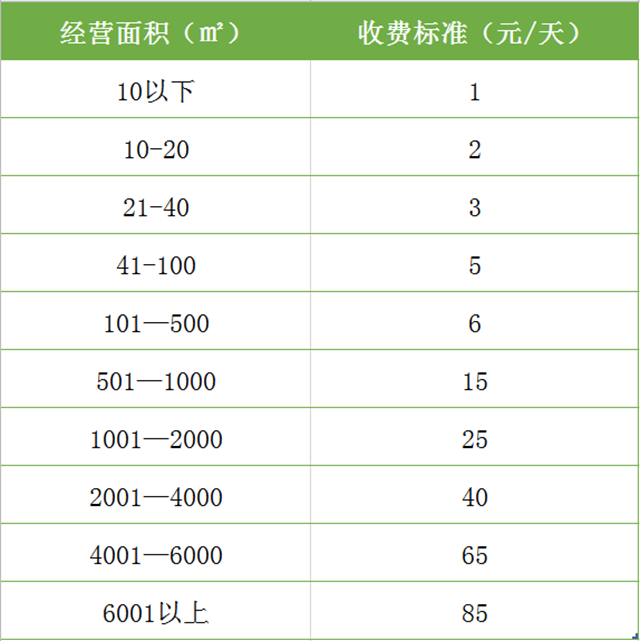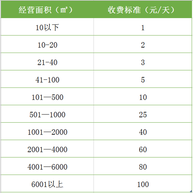 臨時(shí)經(jīng)營場所(展銷、經(jīng)營性演出、募捐等)每平方米每天1元。