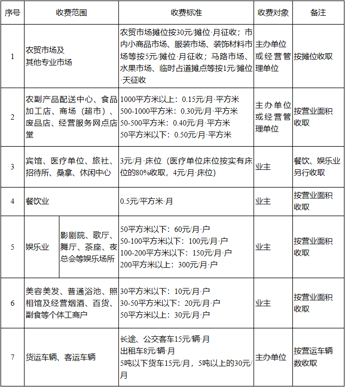 交通運(yùn)輸車輛生活垃圾處理費(fèi)征收標(biāo)準(zhǔn):