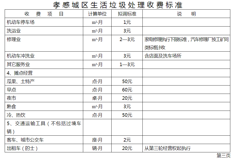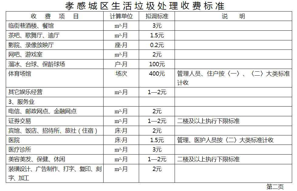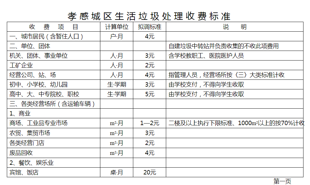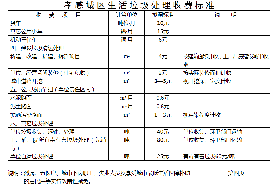 湖北省孝感市城市管理執(zhí)法委員會(huì)公開的生活垃圾處理收費(fèi)標(biāo)準(zhǔn)為: