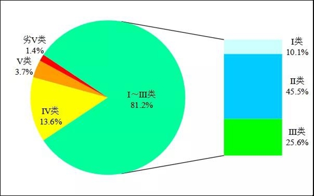 圖1 2020年4月全國(guó)地表水水質(zhì)類別比例