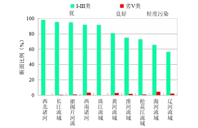 圖3 2020年4月七大流域和西南、西北諸河及浙閩片河流水質(zhì)狀況