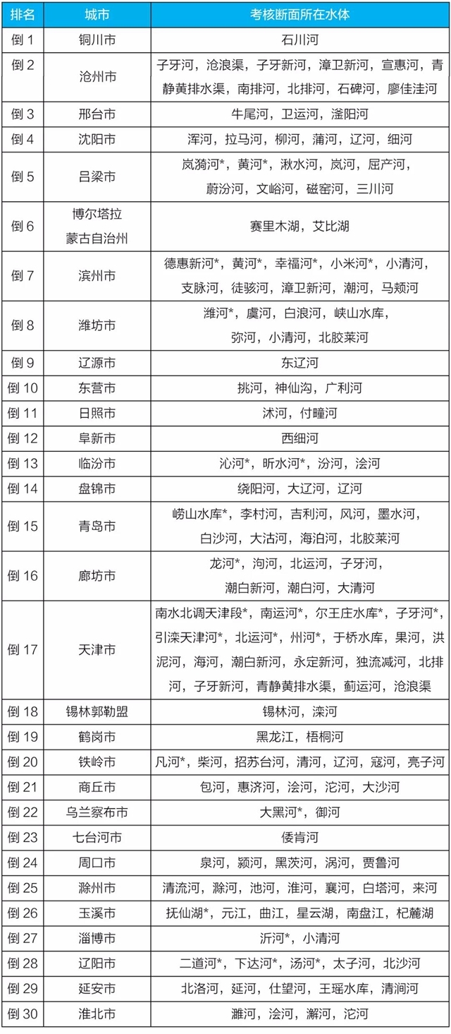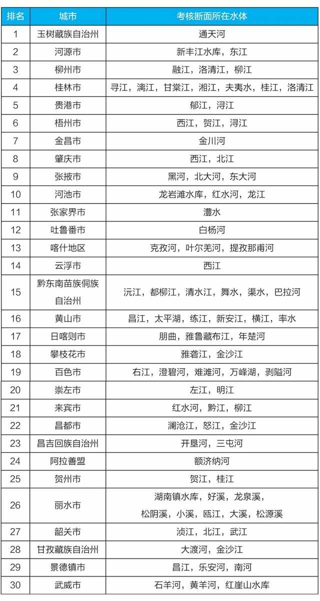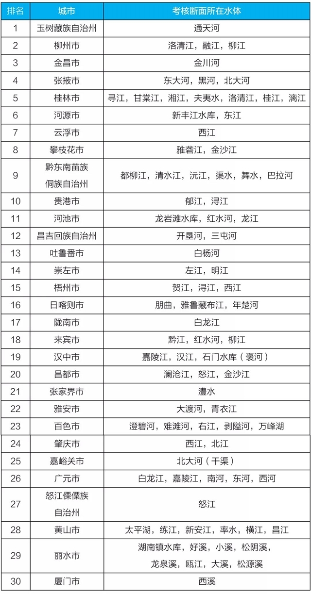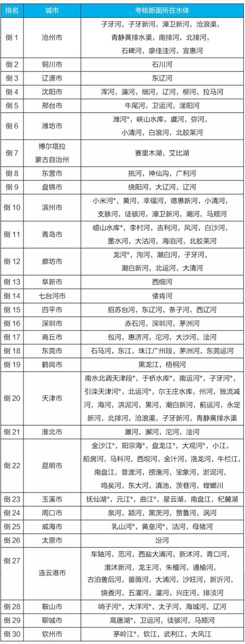 地級(jí)及以上城市國(guó)家地表水考核斷面排名