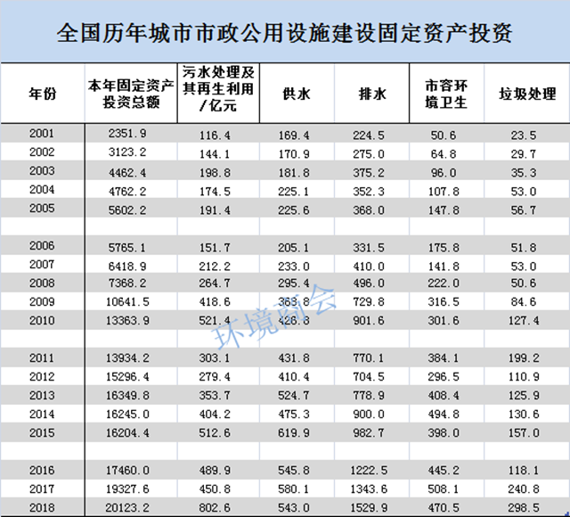 住建部的城鄉(xiāng)統(tǒng)計年鑒終于更新到了2018年,環(huán)境商會將其中城市部分的最新環(huán)保數(shù)據(jù)整理了出來,繪成了以下的圖表,供業(yè)界參考。