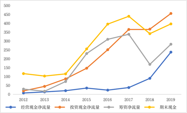 圖 3 2012-2019環(huán)保產(chǎn)業(yè)現(xiàn)金凈流量