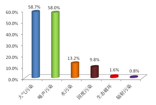 (注:一件舉報(bào)中可能同時(shí)涉及多種問(wèn)題,因此各污染類(lèi)型之和≥100%。)