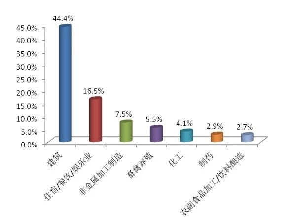 從行業(yè)類(lèi)型來(lái)看,4月公眾反映最集中的行業(yè)為建筑業(yè),占44.4%,其次為住宿餐飲娛樂(lè)業(yè)和非金屬加工制造業(yè),分別占16.5%和7.5%。其中,建筑業(yè)舉報(bào)占比環(huán)比下降0.8個(gè)百分點(diǎn),住宿餐飲娛樂(lè)業(yè)、非金屬加工制造業(yè)占比環(huán)比分別上升4.0個(gè)百分點(diǎn)和1.4個(gè)百分點(diǎn),畜禽養(yǎng)殖業(yè)占比環(huán)比下降2.8個(gè)百分點(diǎn)。