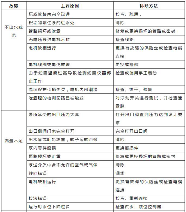 九、曝氣器及管路系統(tǒng)潛水污水(泥)泵常見故障及排除方法