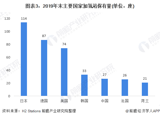 日本在氫燃料電池汽車基建配套建設(shè)領(lǐng)先,加氫站保有量全球第一,日本政府提供財政補貼支持氫能和燃料電池的研發(fā)和示范,重點支持加氫站建設(shè),截至2019年底,日本擁有114座公共加氫站,加氫站保有量全球第一。