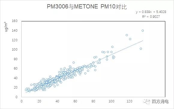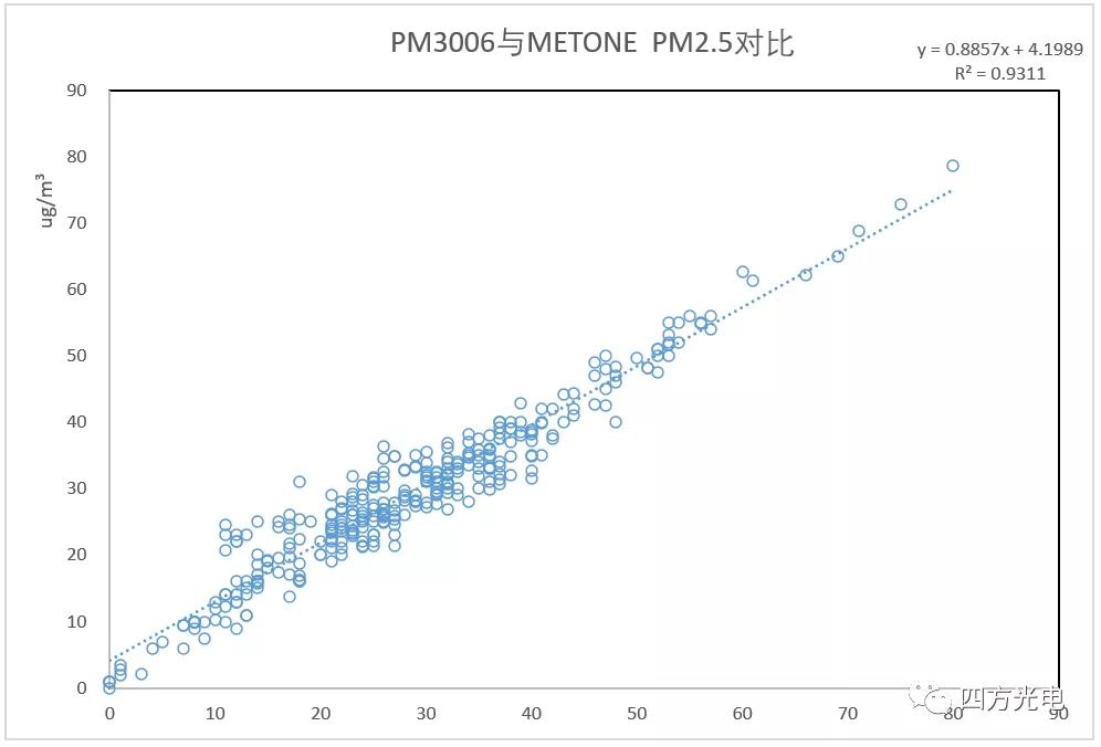 我國室外揚塵網(wǎng)格化監(jiān)測經(jīng)歷了早期的β射線吸收法,到采用民用凈化器大量應用的激光粉塵傳感器的過程。在使用過程中發(fā)現(xiàn),民用的激光粉塵傳感器不僅不能滿足-30——70℃室外環(huán)境溫度的全天候使用要求,同時還必須面對監(jiān)測場所,特別是建設工地經(jīng)常噴灑降霾的水霧影響,或者下雨潮濕的氣候環(huán)境等。這種環(huán)境下,水霧經(jīng)常被判斷為嚴重霧霾造成爆表。同時網(wǎng)格化室外粉塵監(jiān)控希望得到局部的可以與國家大氣環(huán)境監(jiān)測網(wǎng)數(shù)據(jù)具備的PM2.5/PM10/TSP的多項參數(shù)對比, 民用激光傳感器由于激光功率小,采樣流量小, PM10分辨率很低,無法提供準確的PM10, 通常采用根據(jù)PM2.5的數(shù)字進行比例計算,造成PM10監(jiān)測數(shù)據(jù)失真。四方光電研制的PM3003X、 PM3006激光揚塵傳感器通過采用寬溫型大功率線型激光光源、API粉塵自動識別技術、先進的流道設計實現(xiàn)抗污染、大流量車規(guī)級采樣機構、高濕度環(huán)境的水霧去除裝置等,低成本地實現(xiàn)了對室外揚塵粉塵與β射線吸收法達到0.9相關系數(shù)的高精度測量。
