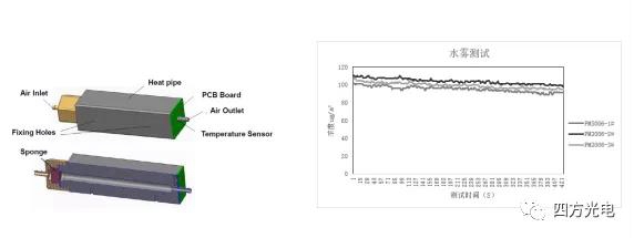 四方光電研制的PM3003X、 PM3006激光揚塵傳感器前端配套了除濕裝置,防止室外環(huán)境中細小的水珠進入檢測氣室,消除水汽對揚塵傳感器的精度影響。