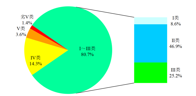 圖1 2020年5月全國(guó)地表水水質(zhì)類別比例